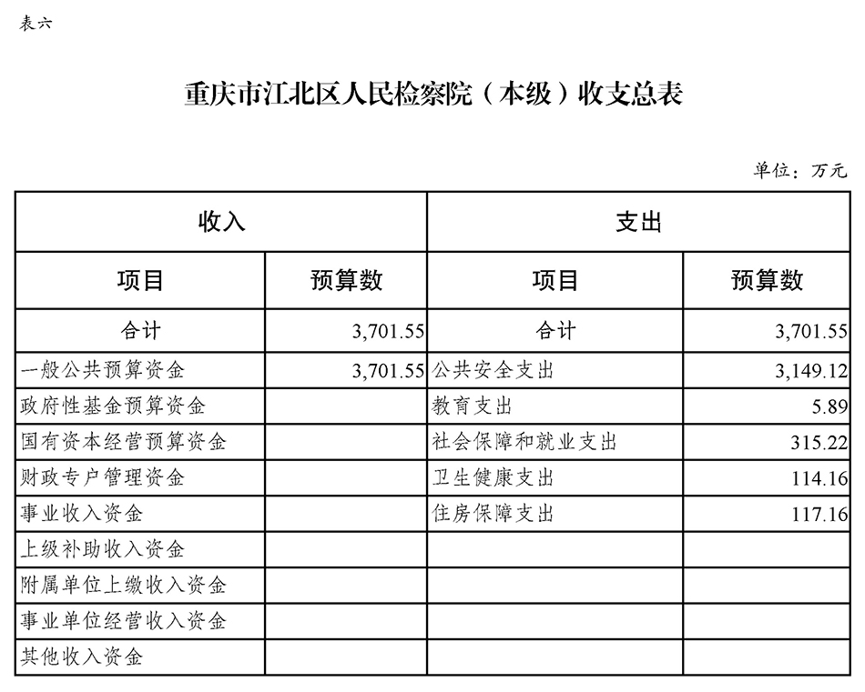 重庆市江北区人民检察院(本级)2022年度预算公开