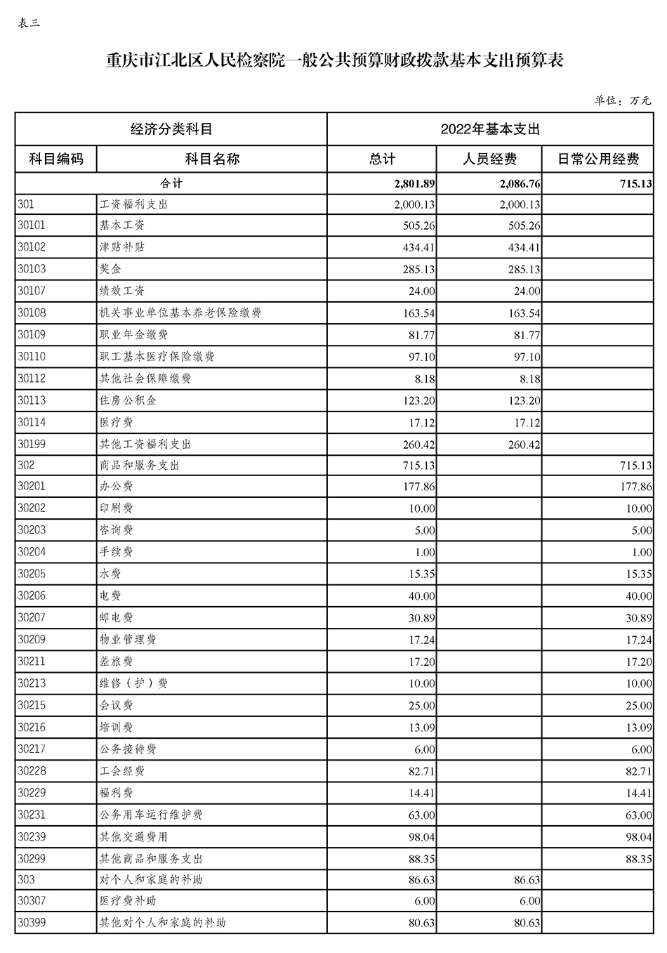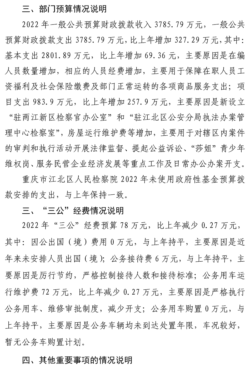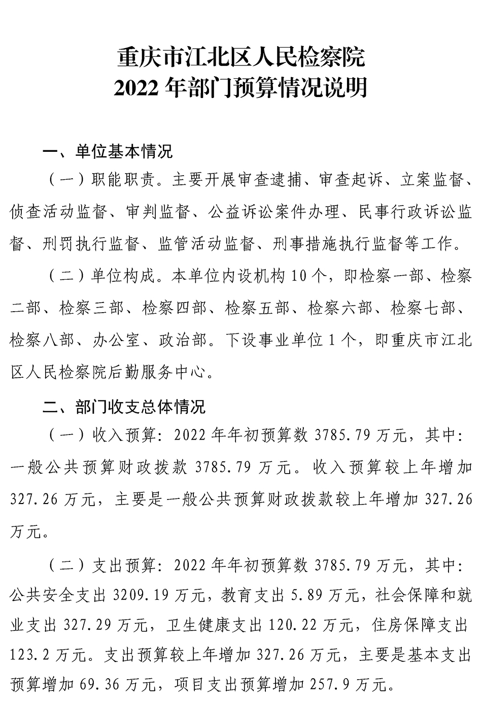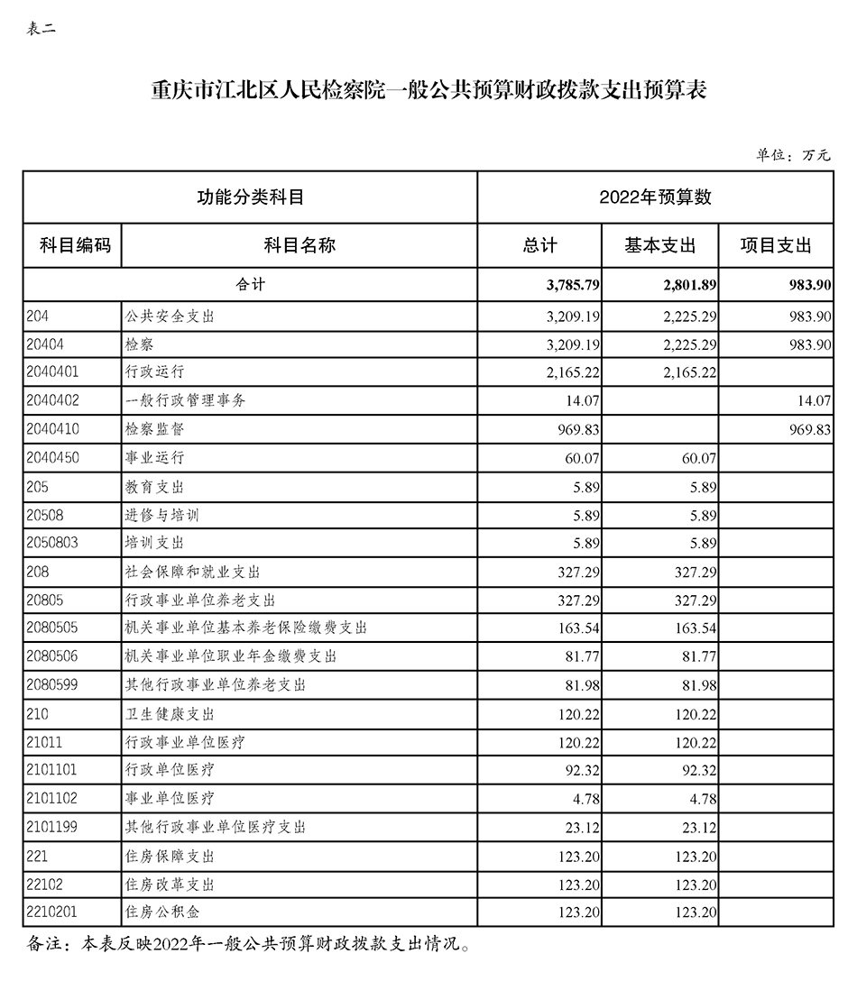 重庆市江北区人民检察院2022年度预算公开
