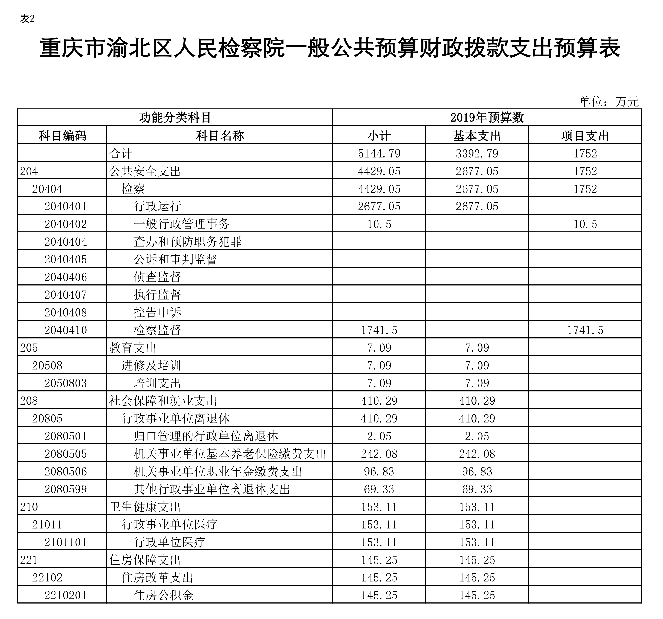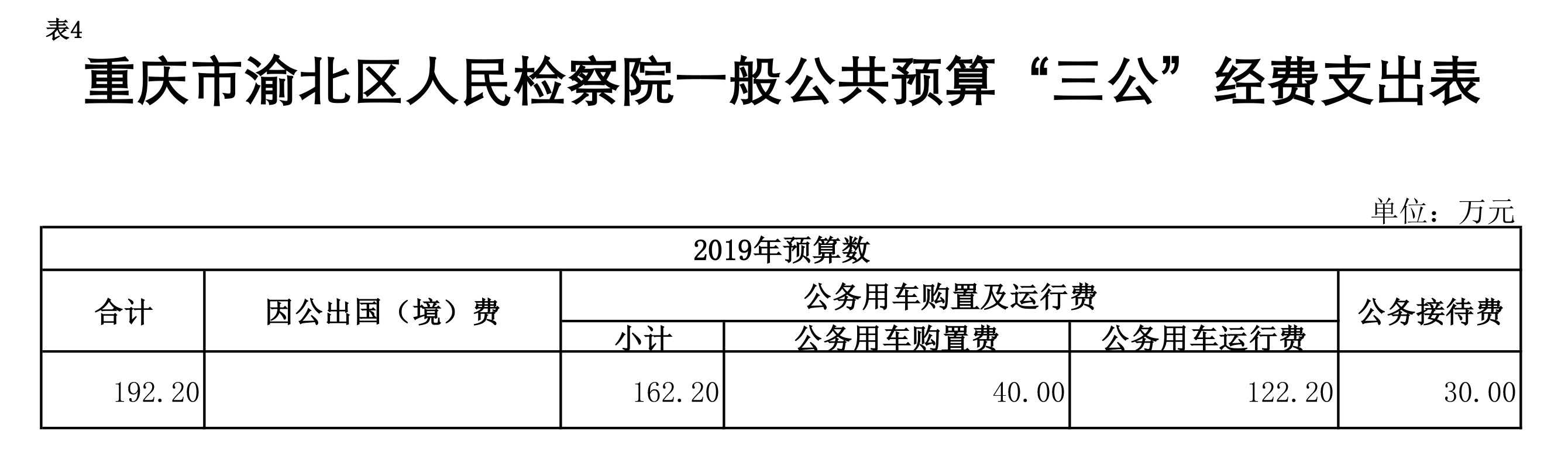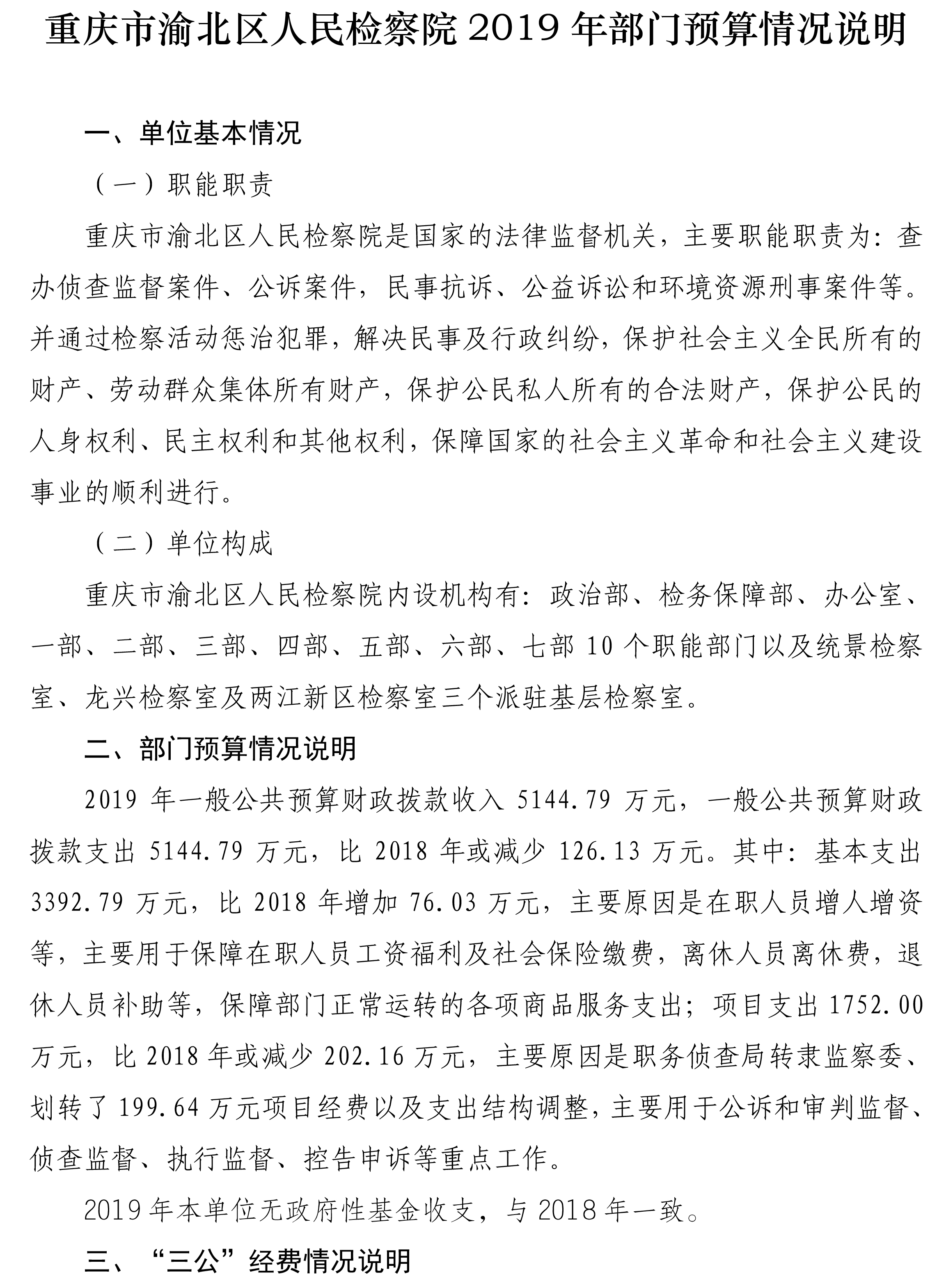重庆市渝北区人民检察院2019年部门预算公开