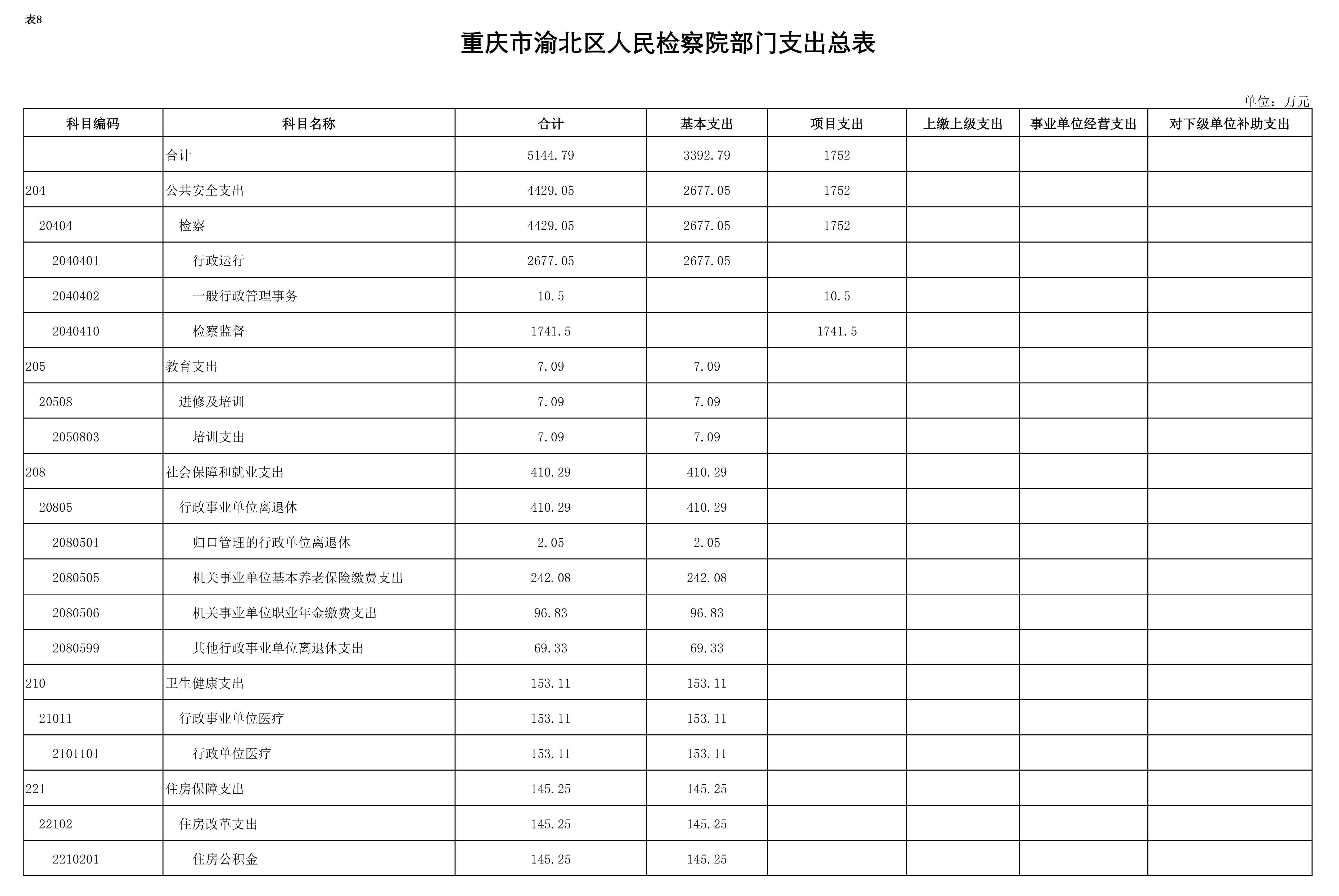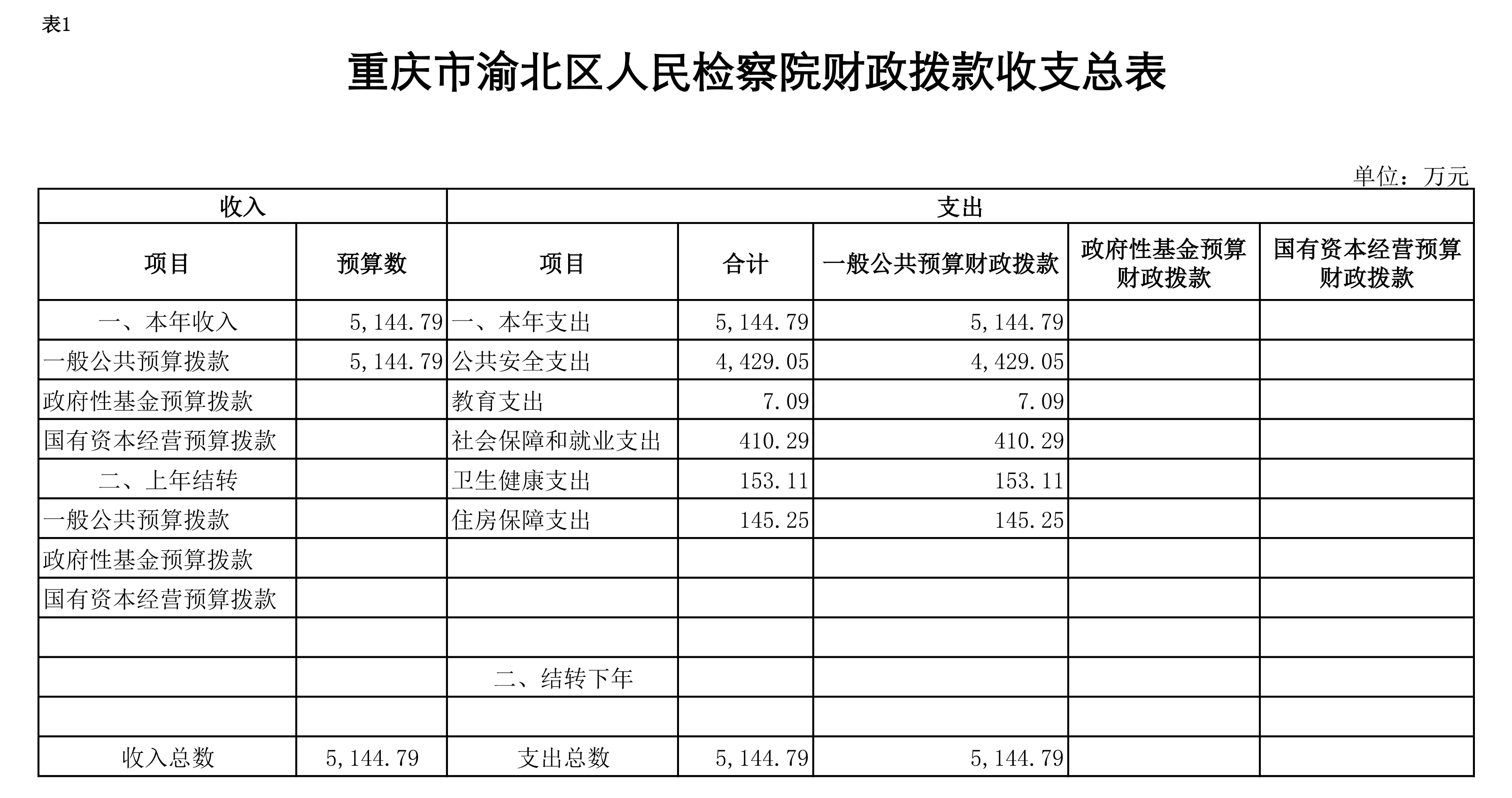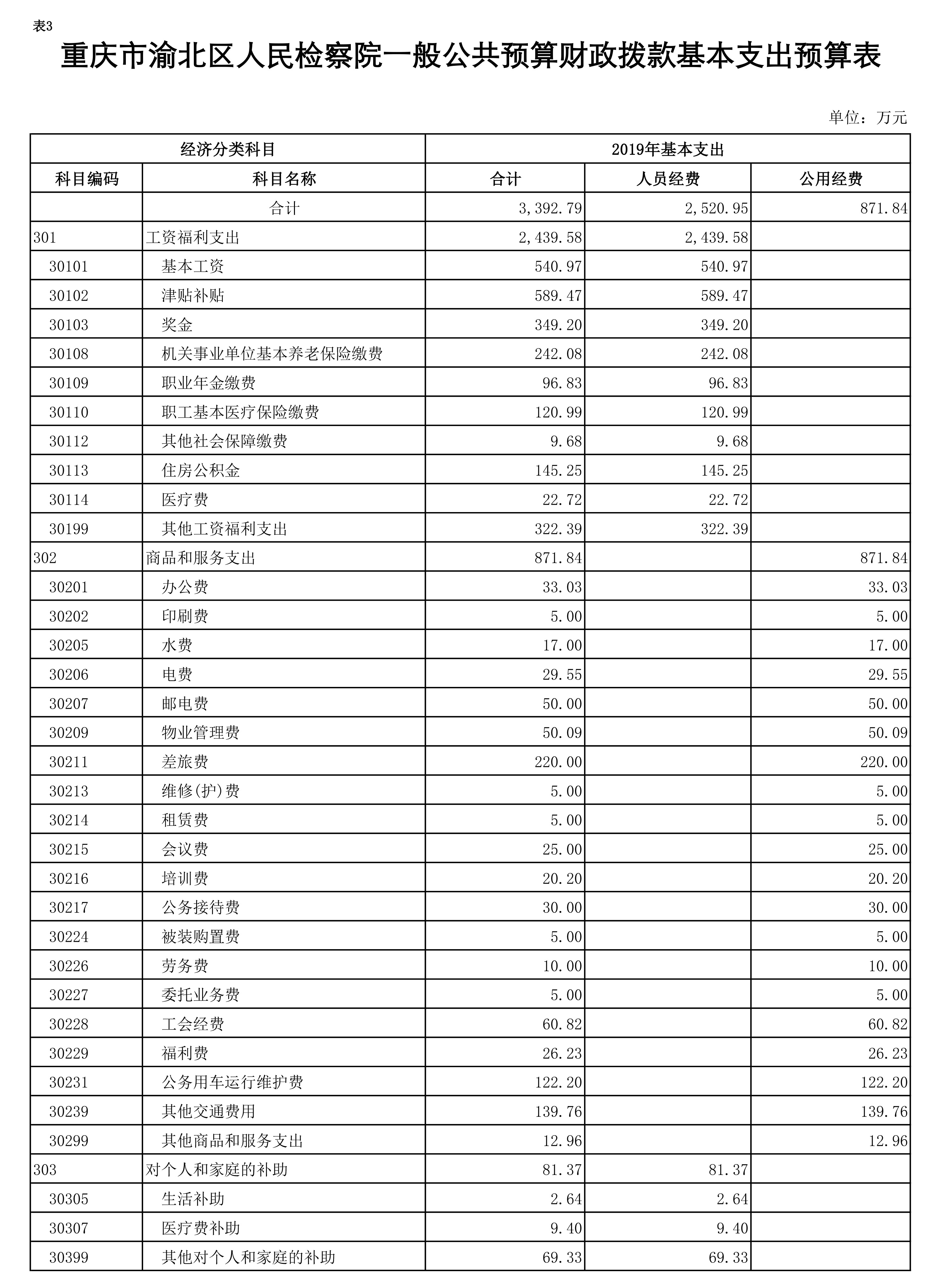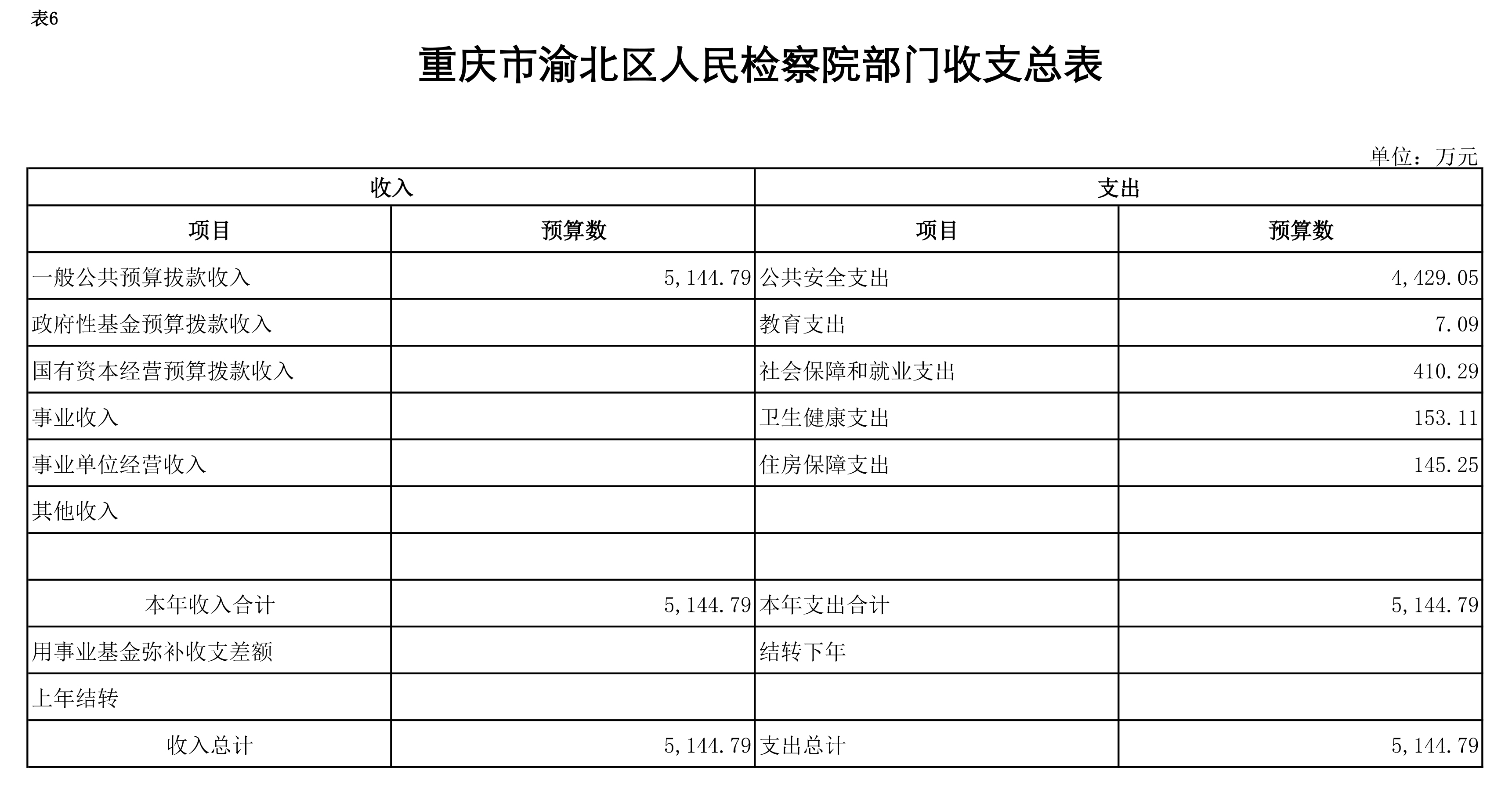 重庆市渝北区人民检察院2019年部门预算公开