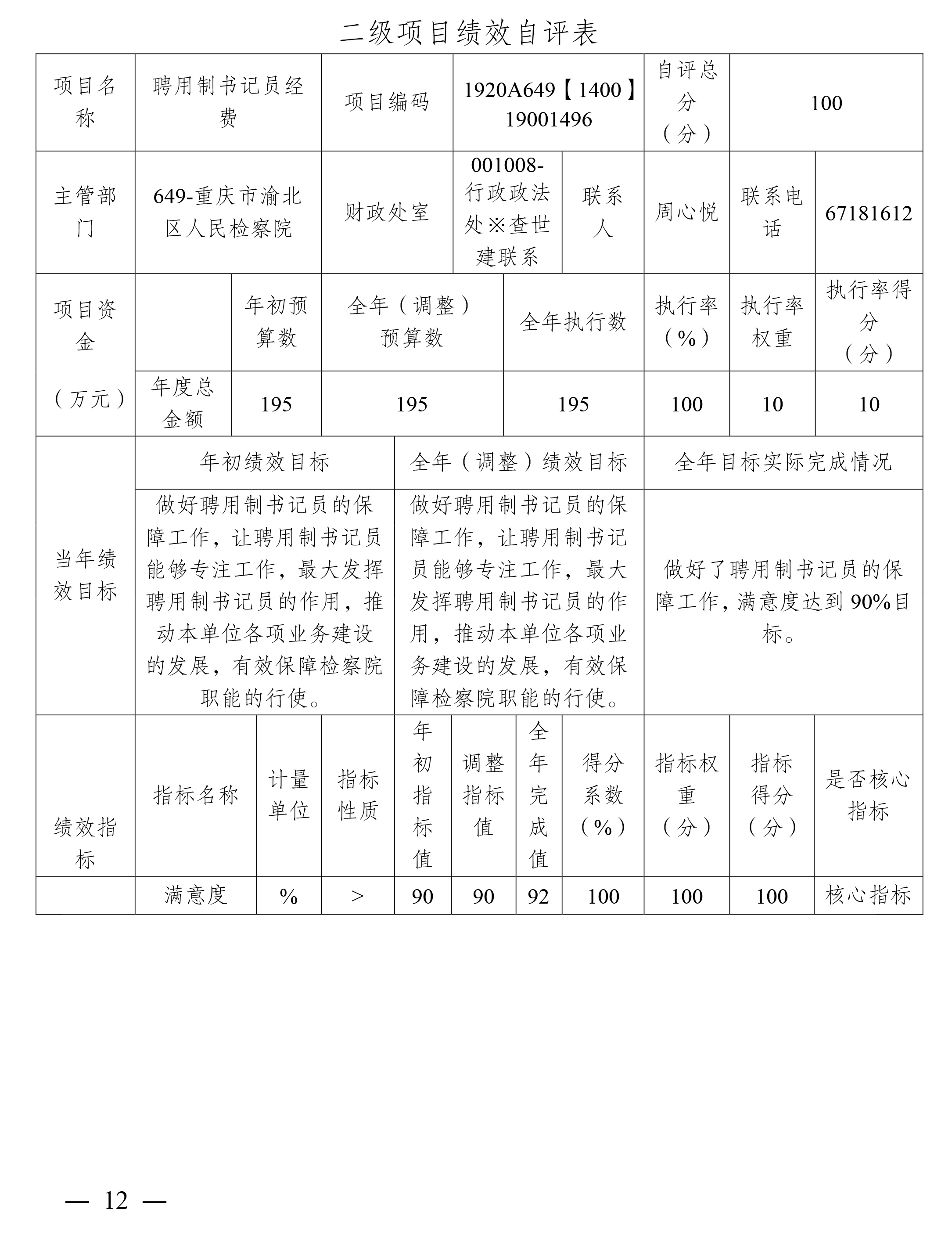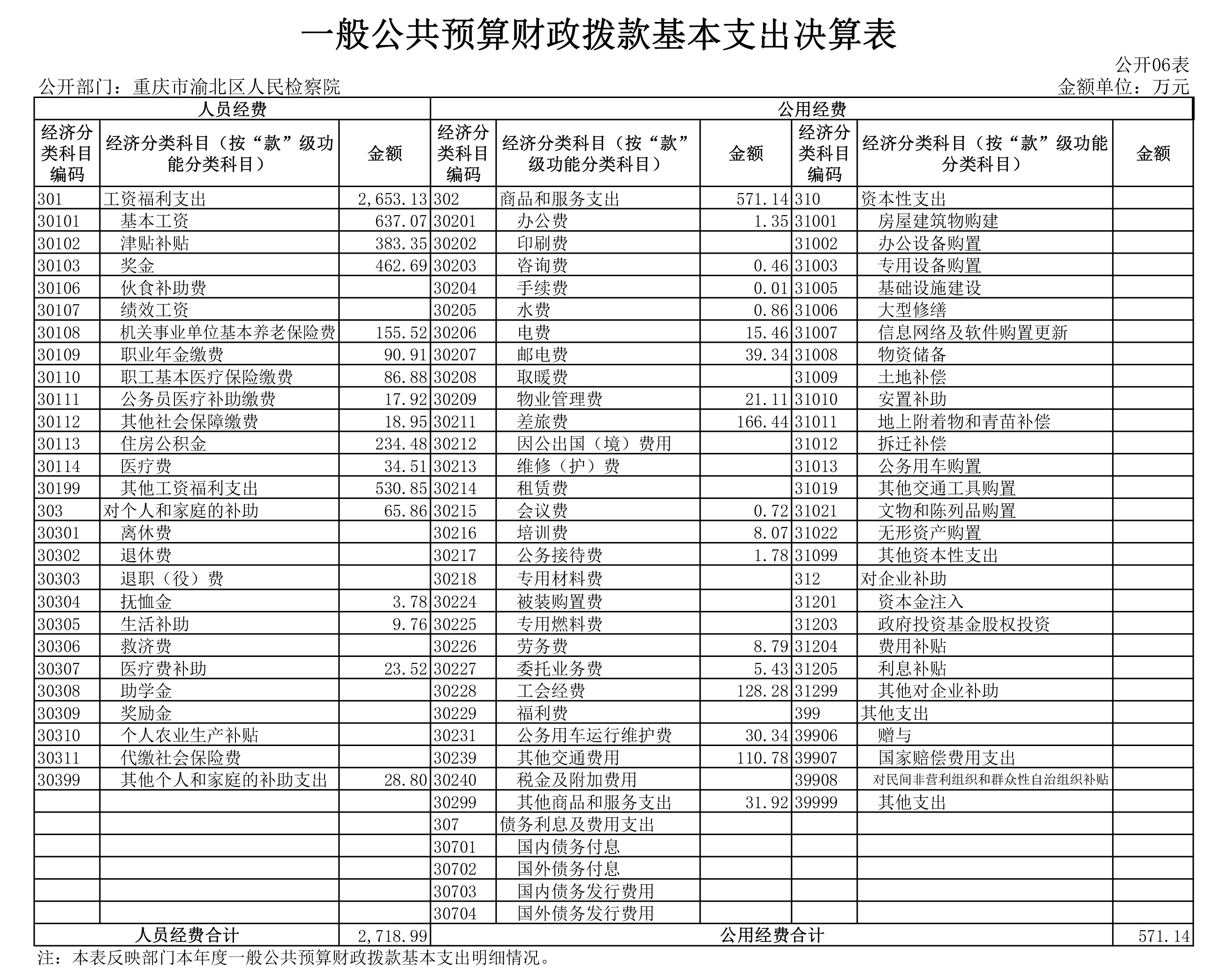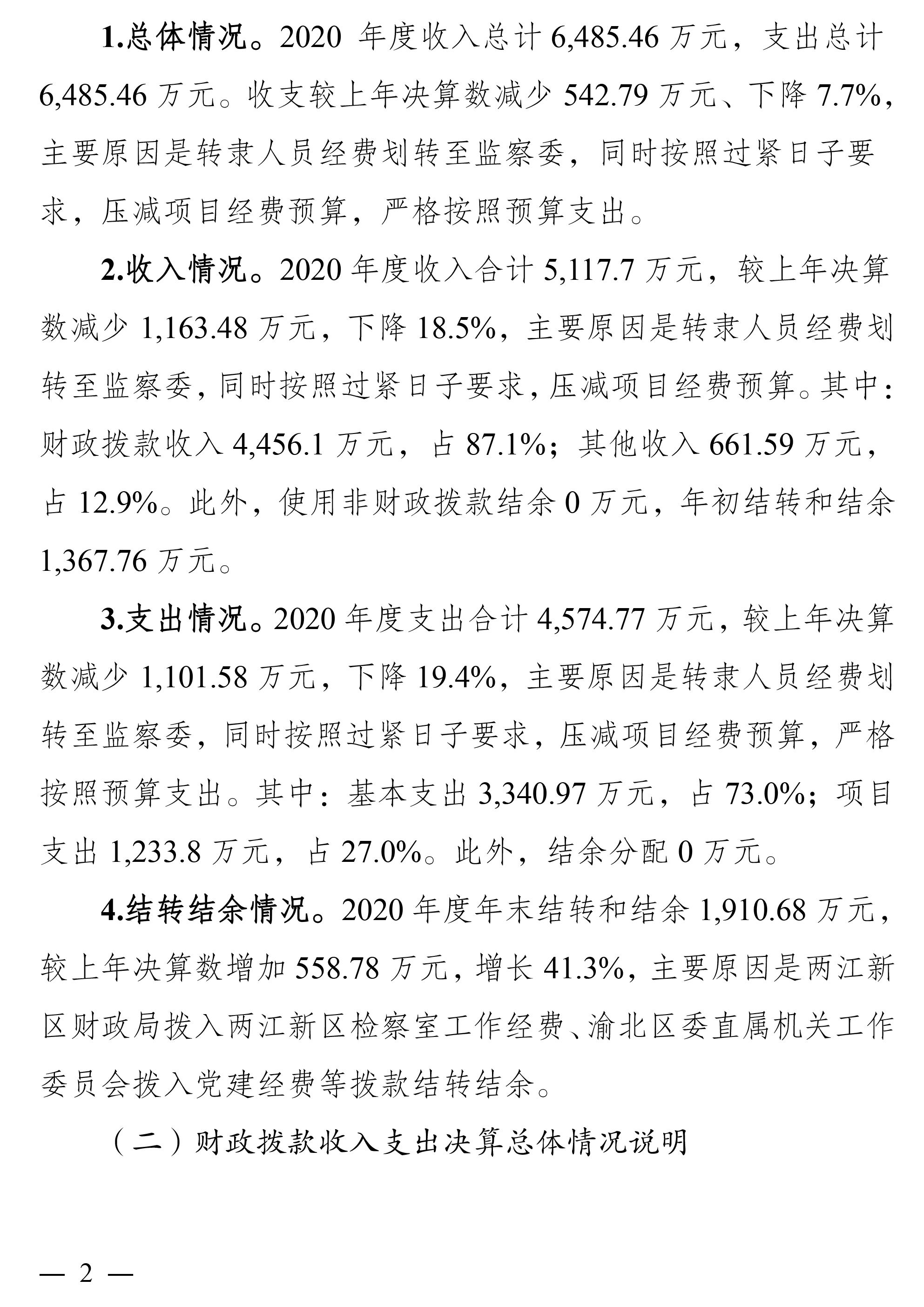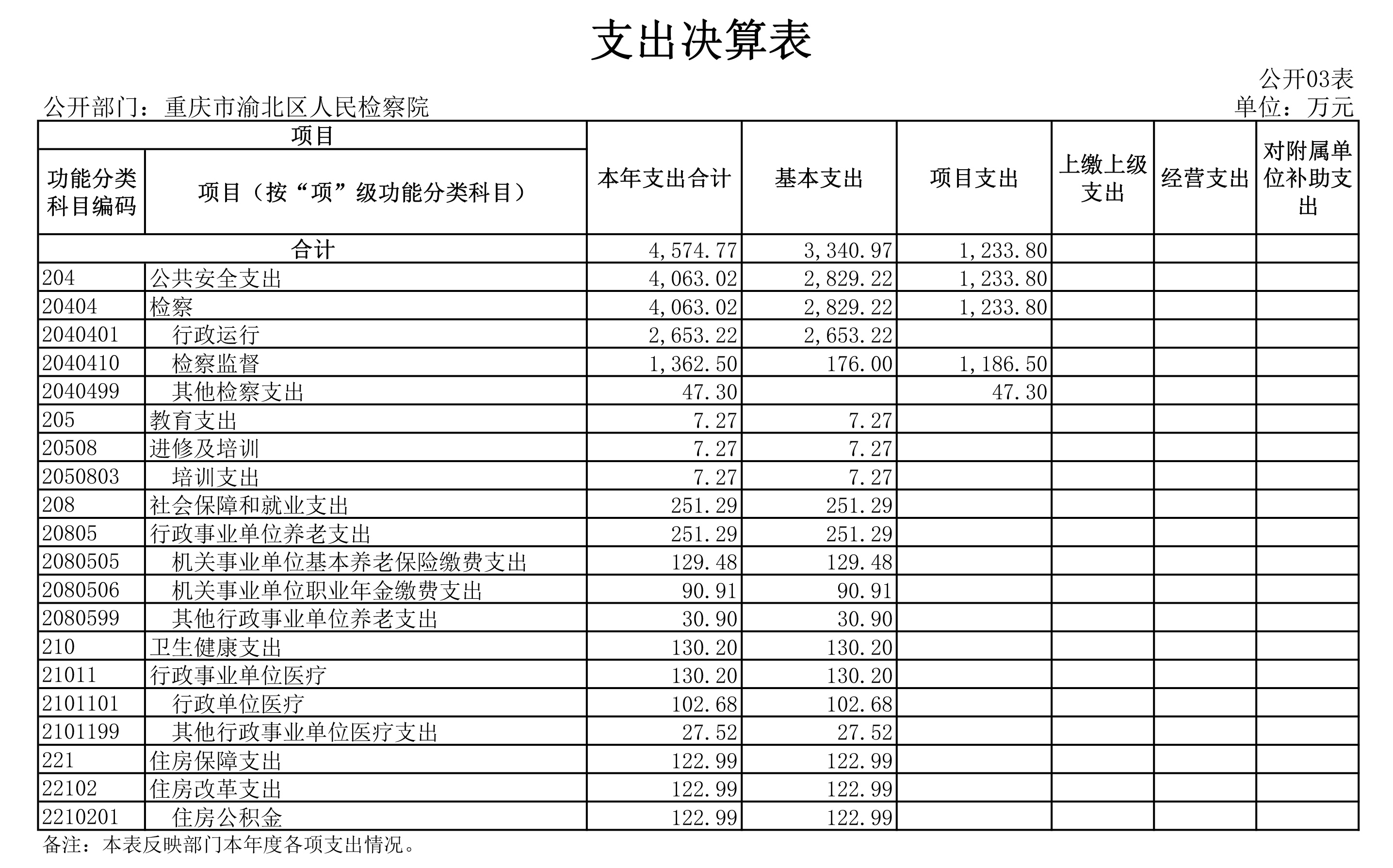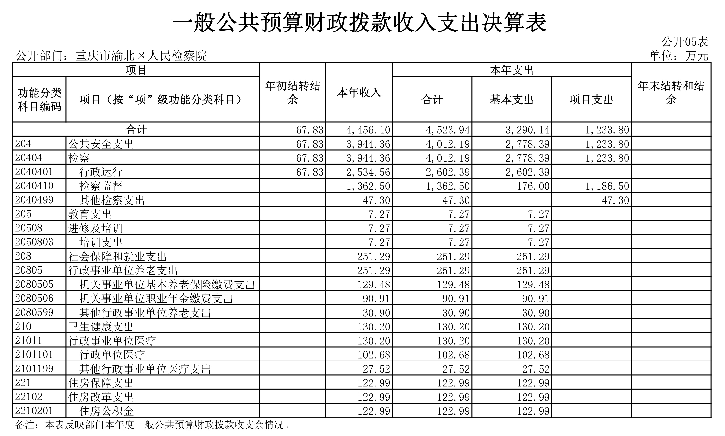 重庆市渝北区人民检察院2020年部门决算公开