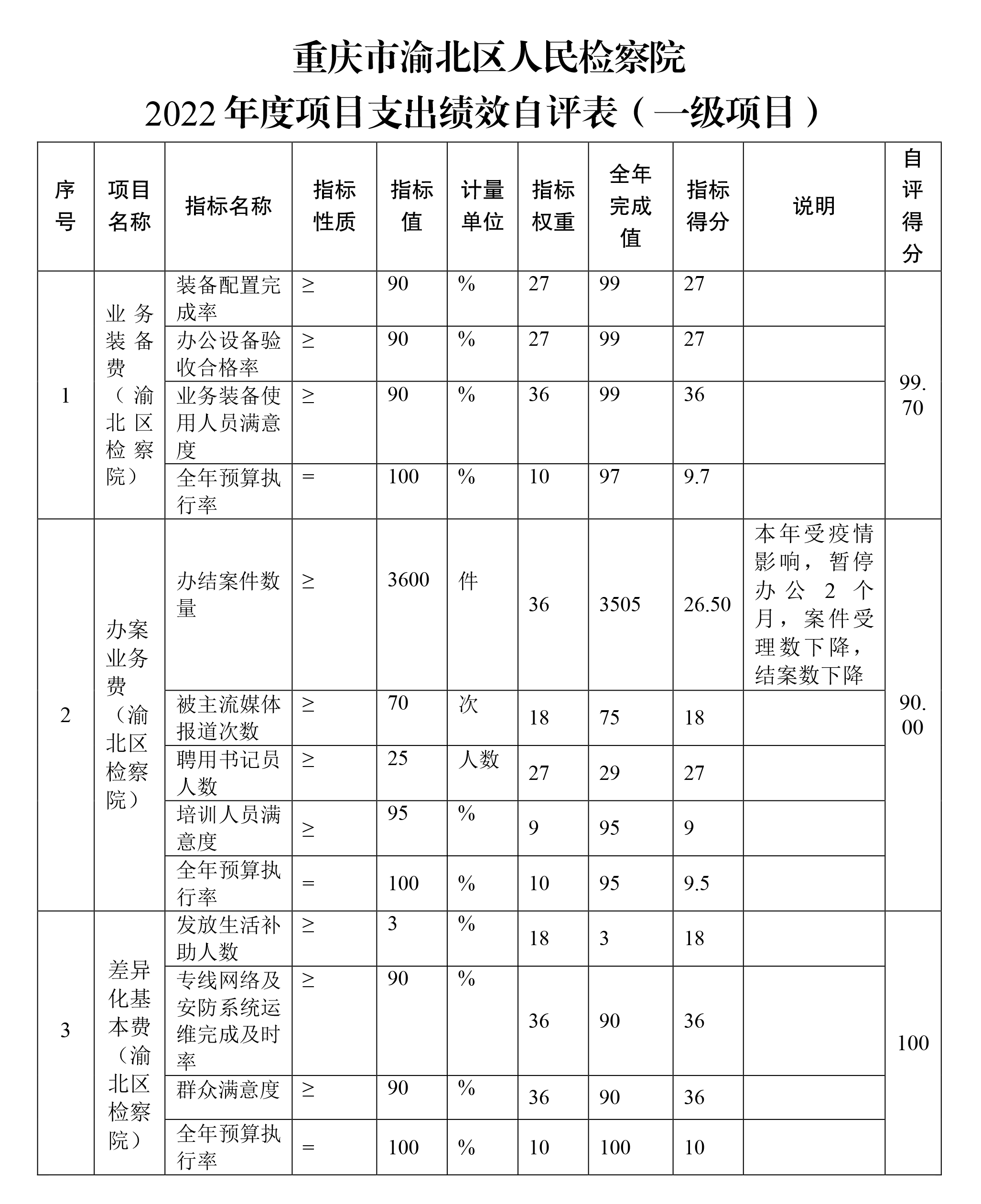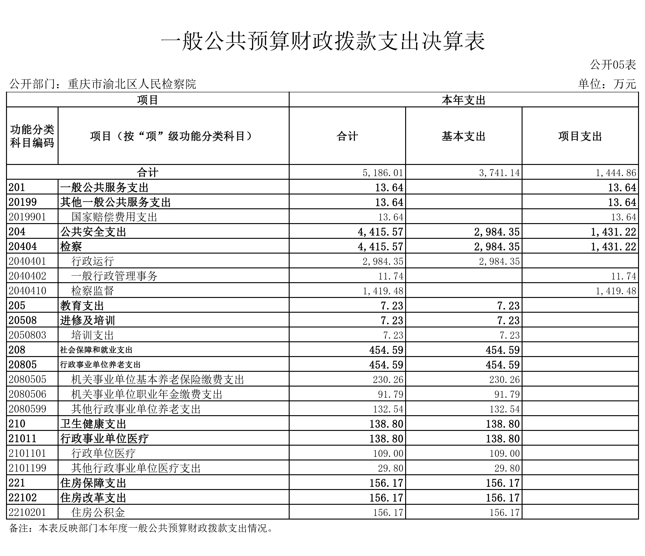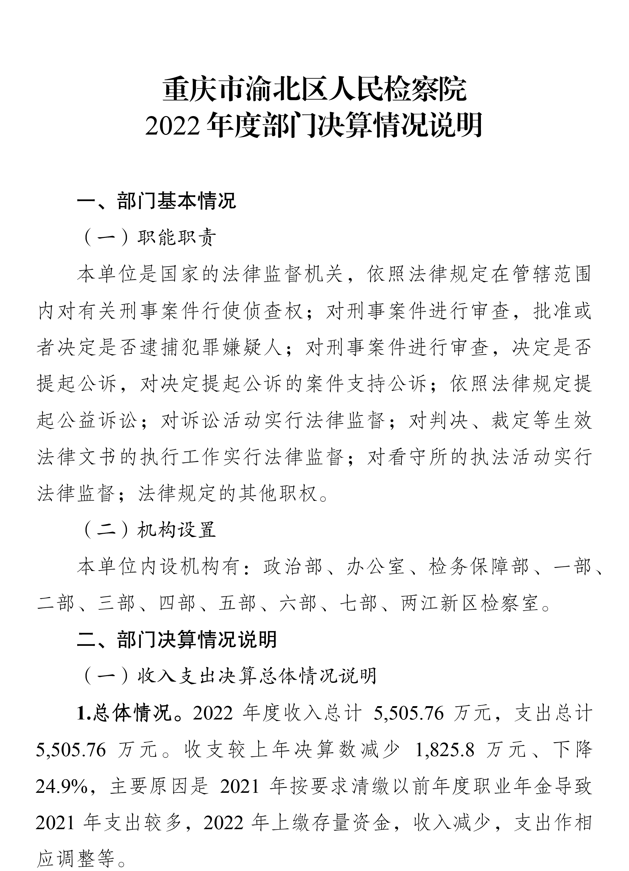 重庆市渝北区人民检察院2022年度部门决算公开