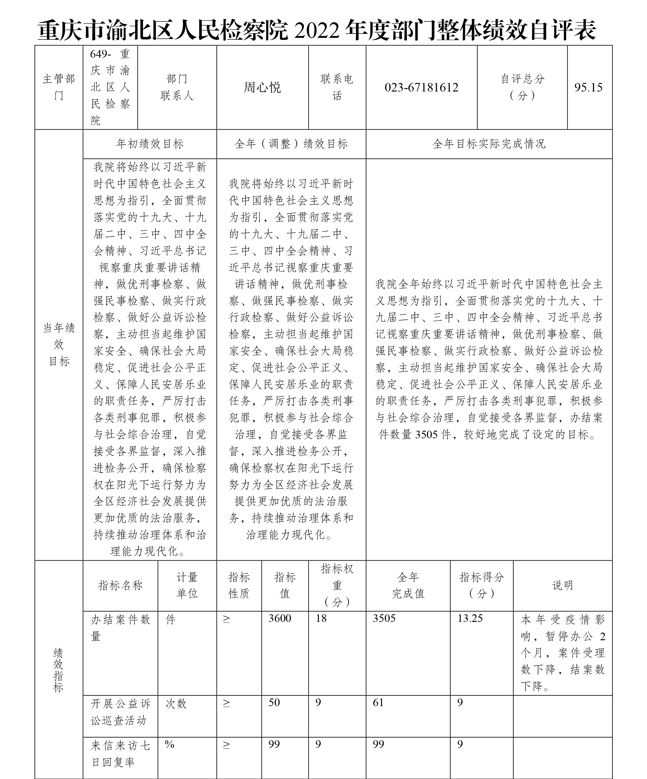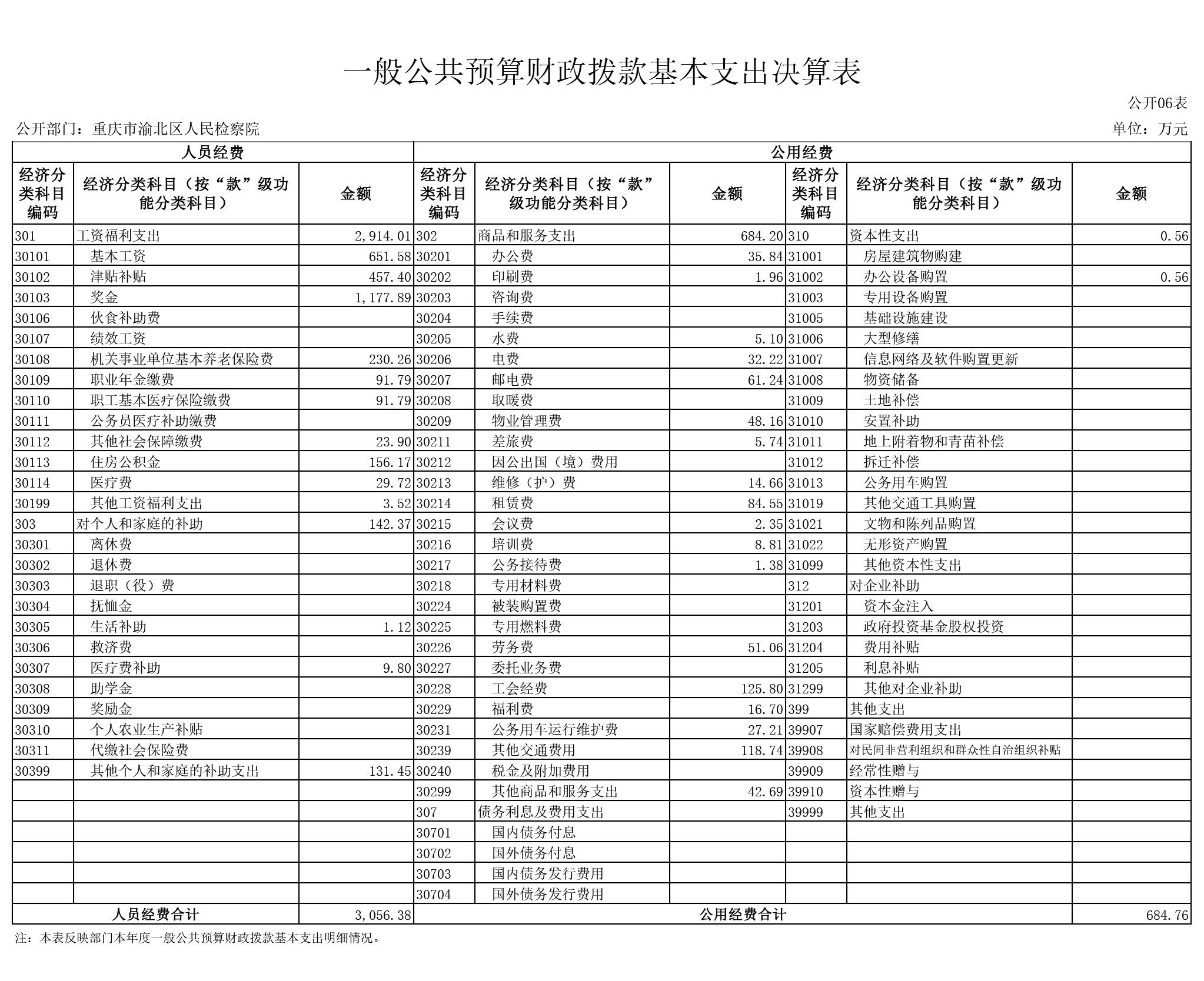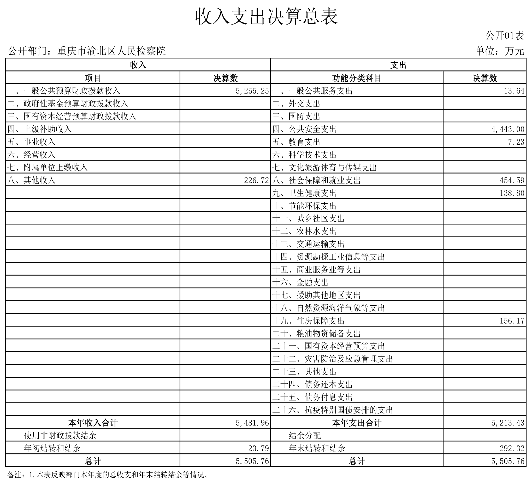 重庆市渝北区人民检察院2022年度部门决算公开