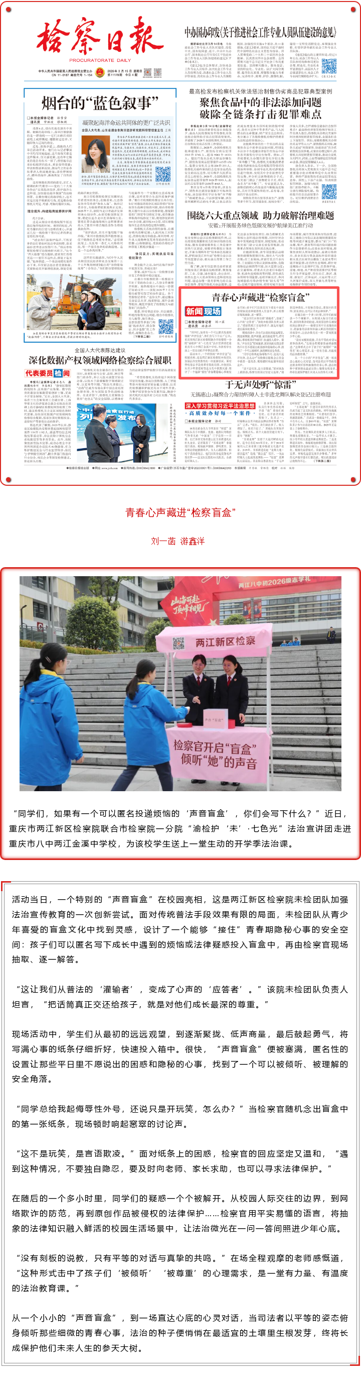 渝检护“未”|检察日报头版:青春心声藏进“检察盲盒”