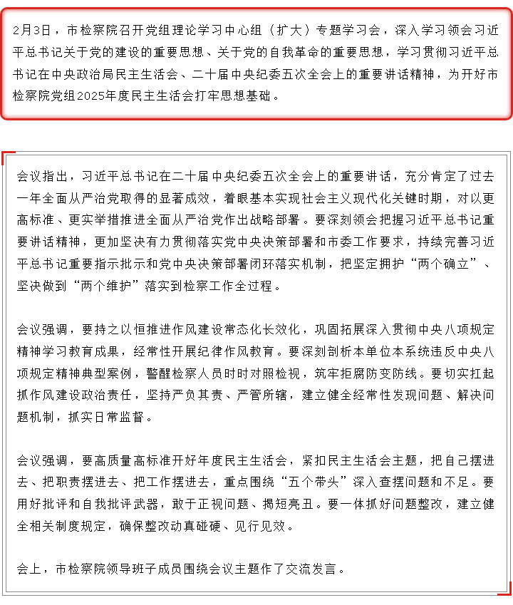 市检察院召开党组理论学习中心组(扩大)专题学习会