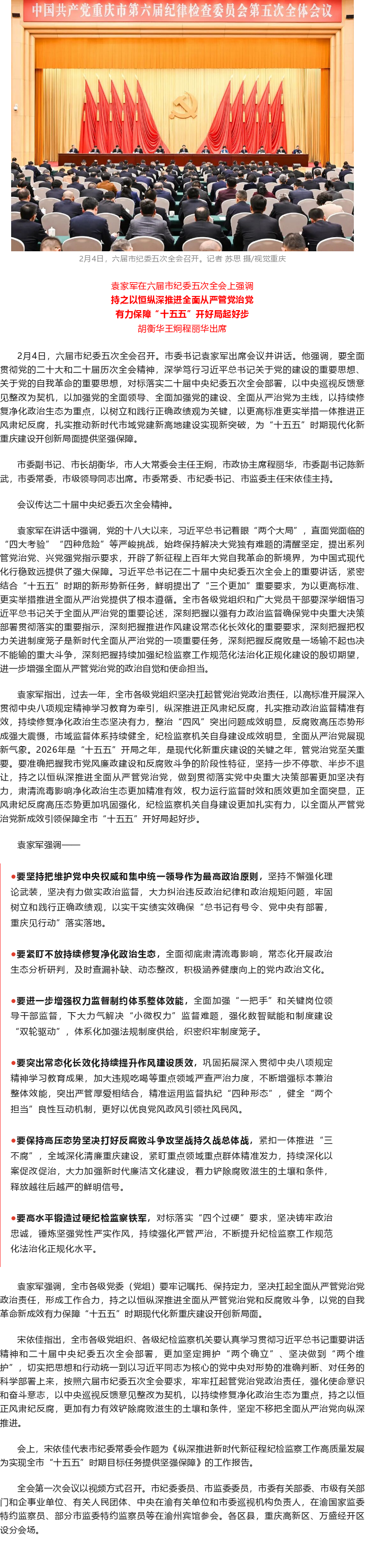 袁家军:持之以恒纵深推进全面从严管党治党 有力保障“十五五”开好局起好步