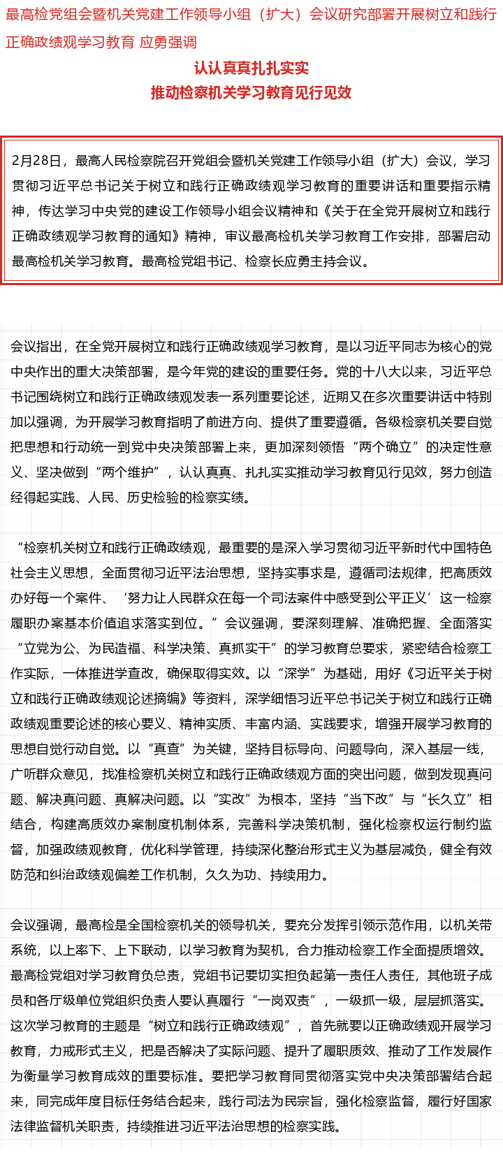 最高检党组会部署启动树立和践行正确政绩观学习教育