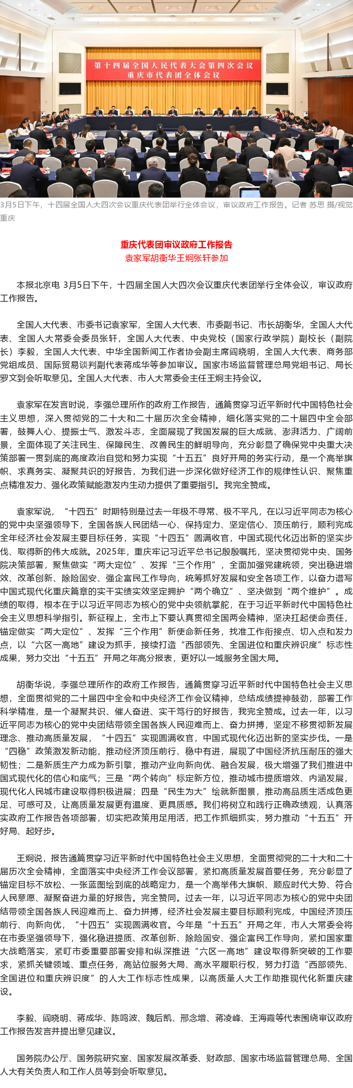 重庆代表团审议政府工作报告 袁家军胡衡华王炯张轩参加