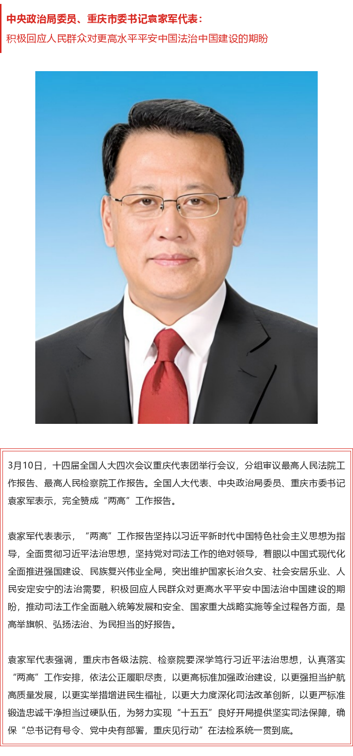 全国两会|袁家军代表:积极回应人民群众对更高水平平安中国法治中国建设的期盼