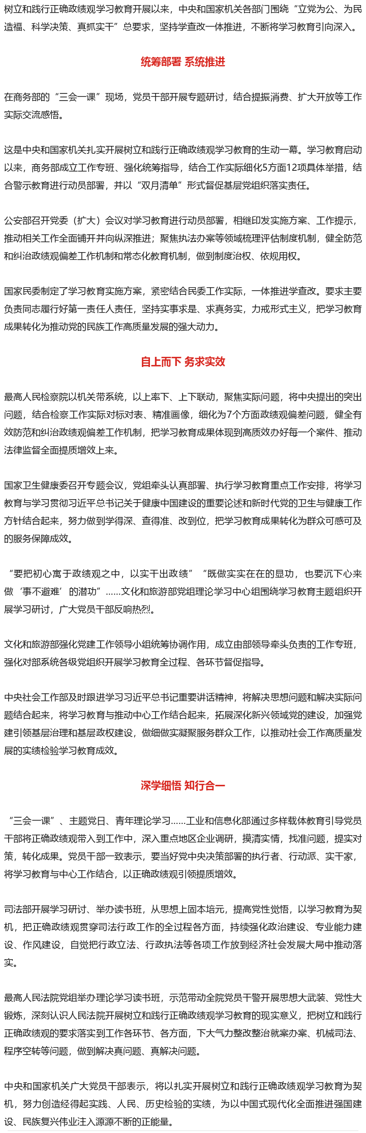 深学细悟强党性 知行合一建新功——中央和国家机关扎实开展树立和践行正确政绩观学习教育