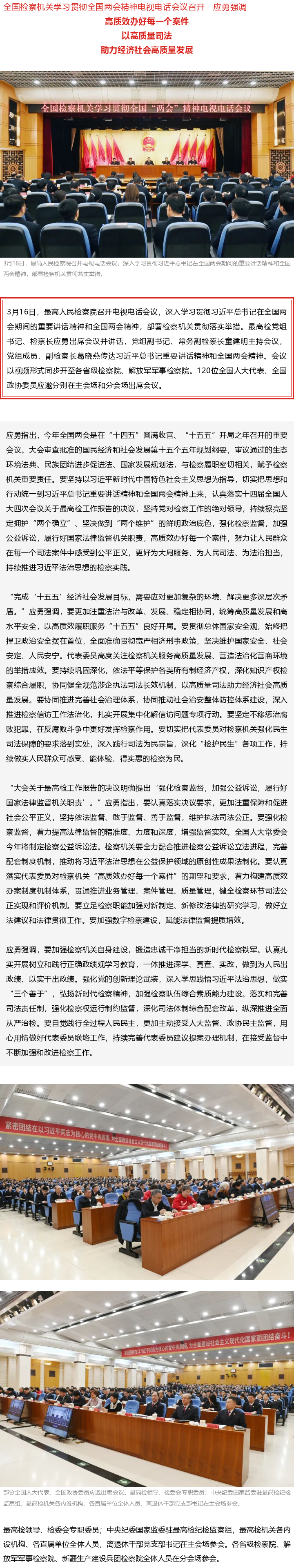全国检察机关学习贯彻全国两会精神电视电话会议召开