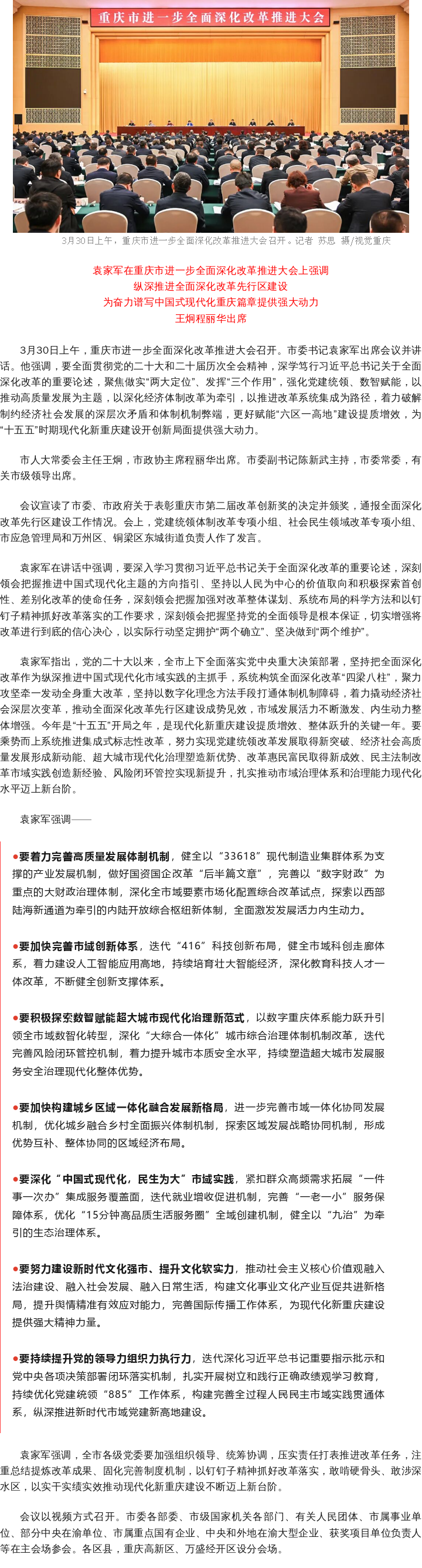 袁家军:纵深推进全面深化改革先行区建设 为奋力谱写中国式现代化重庆篇章提供强大动力