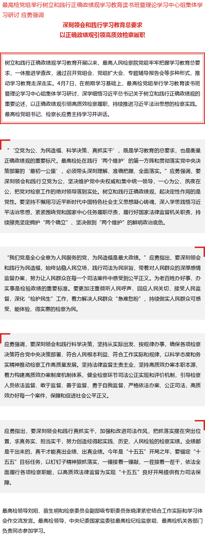 深刻领会和践行学习教育总要求,以正确政绩观引领高质效检察履职