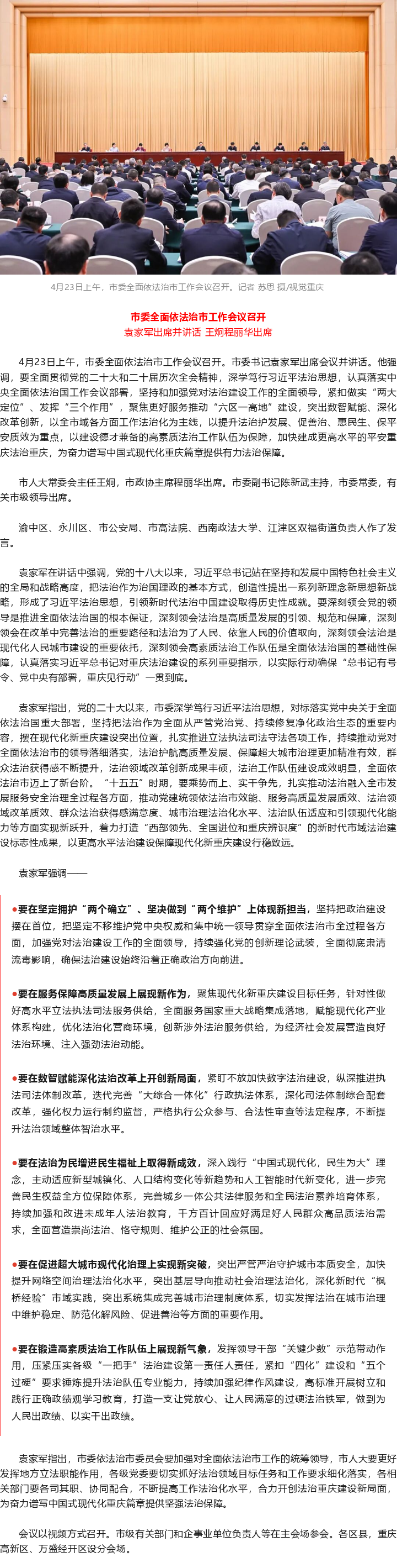 市委全面依法治市工作会议召开 袁家军出席并讲话 王炯程丽华出席