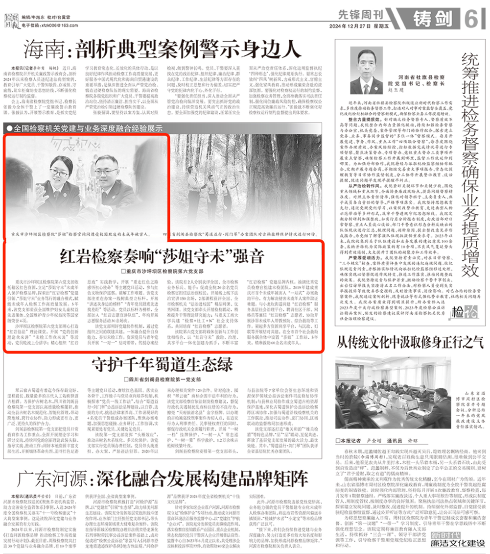 该院第六党支部将载体创新与工作创优相结合,以“红岩守未”救助、治理、共享平台一体化创建为抓手,不断丰富“红岩检察”党建品牌内核。抽调优秀党员检察官组建未检团队,2019年建成重庆市首个未成年被害人“一站式”办案救助平台,有力解决侵害未成年人案件取证难题。与小龙坎街道共建“红岩检察”服务基层社会治理平台,聘请社区干部、网格员等兼任“红岩检察”志愿者,协助开展涉罪未成年人帮教预防、综合救助等工作。架起多方资源共享平台,与民政、妇联等开展结对共建,在全市首个社会救助服务联合体中设置“莎姐”工作站,5年来,精准救助60余名未成年人。