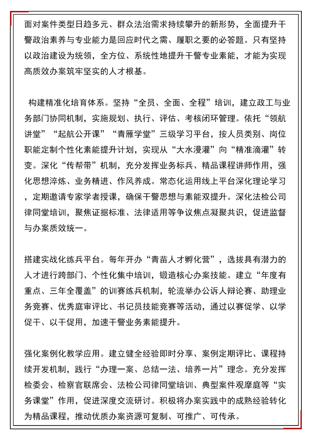 一、坚持铸魂赋能,筑牢高质效办案人才根基